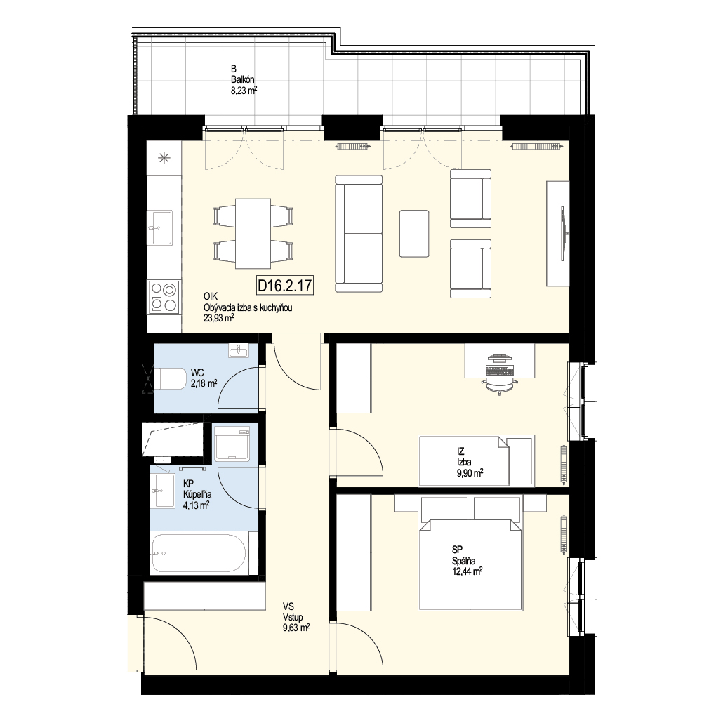 | Balkón | 8,23 m2 |